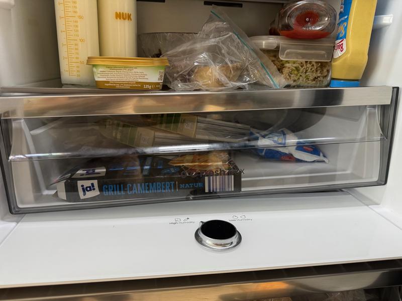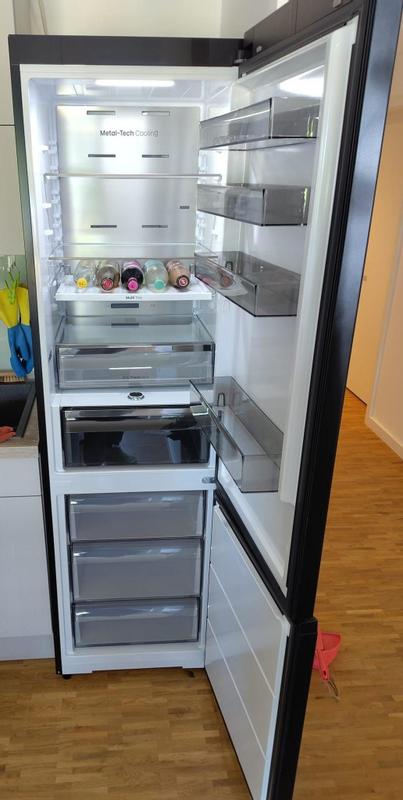 Meine Erwartungen an den Kühlschrank waren sehr hoch, meinen letzten Kühlschrank habe ich vor 10 Jahren gekauft. Ich wollte etwas mit besser Energieeffizienz. Leider fingen die Probleme bereits beim Auspacken an. Die Folie kann nicht komplett entfernt werden, da sie unter der Verkleidung für die Griffe ragt. Leider kann diese nicht entfernt werden, wodurch selbst beim peniblen Abziehen kleine Stücke von Restfolie verbleiben. Optisch absolut untragbar, da diese genau im Sichtfeld sind und bei schwarzer Front immer ins Auge fallen. Ich habe eine Stunde damit versucht diese Folienreste und habe dann frustriert aufgegeben. Leider hielten die Probleme an. Bereits am zweiten Tag zeigte der Kühlschrank Fehler E3 – Gefriertemperatursensor defekt. Laut Anleitung erstmal kein großes Problem, da das Gefrierfach dann in einen Notlauf gehen sollte und die Kühlleistung trotzdem noch mehr als ausreichend sein soll. Das ist definitiv nicht der Fall. Das Gefrierfach kühlt zwar noch, jedoch sind nahezu alle Lebensmittel aufgetaut. Das Ergebnis war flüssiges Eis und matschiges Brot. Bei den Temperaturen eine absolute Katastrophe und ich durch alles wegschmeißen. Auf der Suche nach einer Lösung wollte ich ein Ticket über die eigene App eröffnen, was auch wunderbar funktioniert bis zu dem Zeitpunkt an dem man das Ticket absenden möchte. „Unbekannter Fehler bitte versuchen sie es erneut“ Daher musste ich den normalen Mail-Support nutzen, um die Reparatur zu beauftragen. Zuletzt muss man hier noch die Fehlkonstruktion der 0-Grad Schublade erwähnen. Diese verkantet sich beim nahezu bei jedem Herausziehen. Das Problem ist bei genauer Betrachtung schnell gefunden: Die Schublade ist schlicht zu schmal und springt damit aus der Führung. In Summe also ein Produkt mit Qualitätsmängeln, fehlender Endkontrolle, schlechter App und undurchdachtem Design. Auch der Support reagiert seit 1 Woche nicht auf meine Anfrage und selbst beim Anruf an der Hotline wurde mir ein Rückruf versprochen, der nie erfolgte. Einzig positiv ist das Platzangebot im Kühlschrank, daher gibt es noch 2 Sterne in der Bewertung.