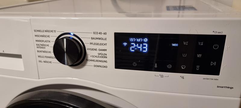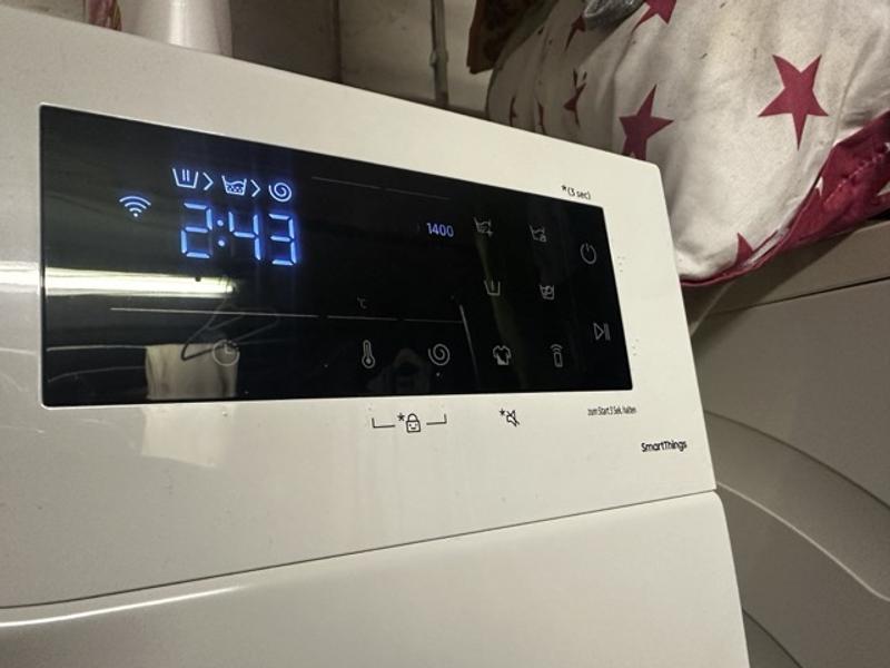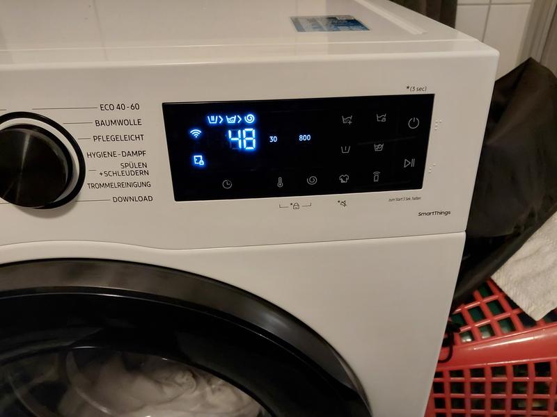 Man kann die WM mit seinem Samsung Account verbinden und über Smartthings dann Einstellungen vornehmen und eine Mitteilung über das Ende des Waschvorgangs erhalten. Das finde ich ausgesprochen praktisch. Die Waschmaschine verbraucht wesentlich weniger Wasser und Strom und rentiert sich für uns daher auch langfristig. Wir sind absolut zufrieden.