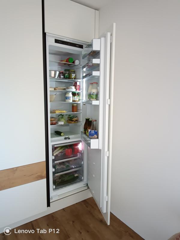 [Diese Bewertung wurde im Rahmen einer Sonderaktion abgegeben.] Der Kühlschrank sollte sich nahtlos und unsichtbar in unsere Küche integrieren lassen. Unser Schreiner hat das Gerät eingebaut, so dass es sich mit derselben Frontplatte wie unsere Hochschränke nahtlos einfügt. Der Kühlschrank ist leise und stört dadurch nicht. Wichtig war uns ebenfalls die Aufbewahrung von Gemüse, Obst und Fleisch in den dafür speziell vorgesehenen Fächern, sowie ein geringer/angemessener Stromverbrauch.