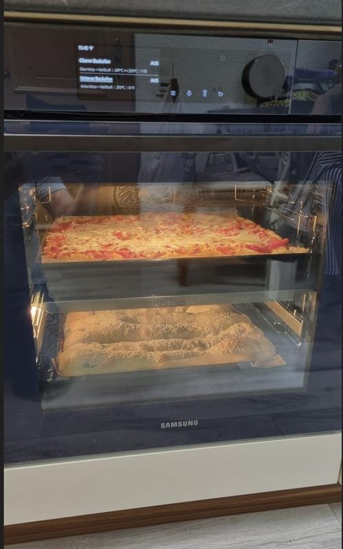 [Diese Bewertung wurde im Rahmen einer Sonderaktion abgegeben.] Ein super klasse Backofen, den ich immer weiter empfehlen würde. Der Samsung Dual Cook macht echt was her. Er kommt im edlen schwarzen Design mit Touch-Display. Die Funktionen erklären sich fast von allein. Der TK-Pizza Modus ist super easy zu finden und meine Kinder sagen, der Ofen macht das Beste aus einer TK-Pizza. Auch Mamorkuchen gelingt auf Anhieb ohne zu trocken zu werden oder anzubrennen. Ich benutze hierfür die internen Zeit- und Backvorgaben. Der teilbare Innenraum ist perfekt. So kann ich nun 2 Gerichte zur gleichen Zeit zubereiten. Der Ofen erkennt, wenn die Abtrennung eingelegt ist. Von unterwegs kann ich nun auch Gerichte fertig backen, dank Wlan & App, die ich zuvor in den Ofen gestellt habe. Somit hab ich das Essen fertig, wenn alle von der Arbeit / Schule kommen.