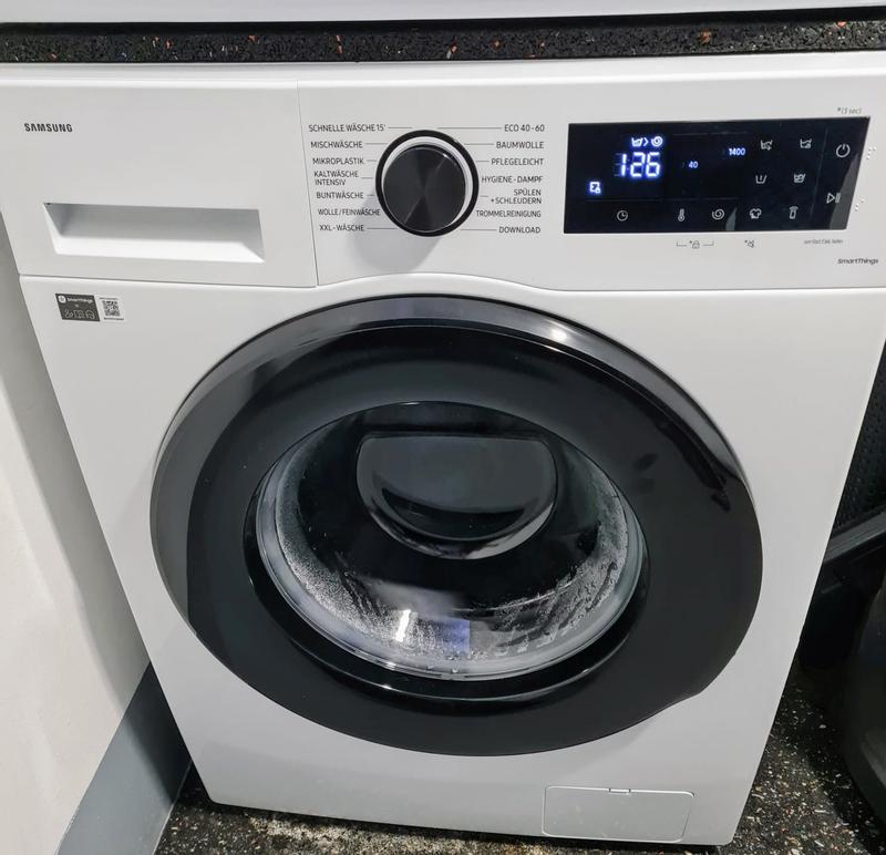 [Diese Bewertung wurde im Rahmen einer Sonderaktion abgegeben.] Die Waschmaschine wurde schnell geliefert. Die Maschine wurde angeschlossen und es gab den Hinweis, dass man zuerst eine Runde ohne Wäsche, nur mit Wasser wäscht. Um die Maschine mit der App zu verbinden muss das Handy im WLAN sein. Da unsere Maschine im Keller im Waschraum steht, hat es trotzdem nach drei Anläufen geklappt (stand dann vor der Türe vom Waschraum. Die Einstellungen sind einfach und alles leicht zu verstehen. SmartThings ist absolut klasse. In der App kann man einen zusätzlichen "SparModus" einstellen. Es wird genau angezeigt wieviel Strom, Wasser man verbraucht und wieviel es im Monat dann ca an Kosten sind. Die Maschine ist sehr sparsam. Das Design von der Maschine ist schlicht und elegant. Das Bedienfeld ist mit Touch und funktioniert einwandfrei. Die Maschine ist leicht zu bedienen, in der App gibt es zusätzliche Programme. Man kann auch mal die Maschine füllen und erst später dann per Handy das Programm wählen und starten. Genauso kann sie per SmartThings pausiert oder gestoppt werden. Wer Alexa hat kann auch diese Verbinden und einstellen, dass sie einem mitteilt das die Maschine fertig ist. Während dem Waschen ist die Maschine angenehm leise. Es gibt viele Programme, für jede Wäsche etwas dabei. Da wir auch Stoffwindeln für unser Baby benutzen und Katzen haben, finden wir das Hygiene Dampf Programm super. Für eine kurze Wäsche gibt es ein 15 Minuten Programm. Größere Sachen haben ein XXL Programm. Die Wäsche wird sauber und riecht gut. Das Waschpulverfach ist immer schön sauber auch bei Waschpulver und Weichspüler. Es bleiben keine Rückstände. Das Einzige was ich persönlich noch super fände, wenn die Maschine eine integrierte Waage hätte, damit ich weiß wieviel Kilo drin sind. Da bei bestimmten Programme nur bestimmtes Kilo rein sollte. Wir sind absolut rundum sonst zufrieden mit der Maschine.