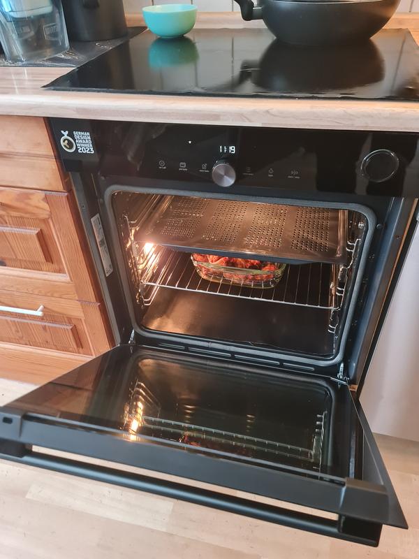 Wenn Sie Wasser in den Wassertank neben dem Display geben und die SteamAssist Funktion nutzen, erhalten Sie schonend zubereitetes und gesundes Essen mit einer hervorragenden Kruste. Bei Auswahl eines Programms mit Dampf informiert Sie Ihr Ofen, wann der richtige Zeitpunkt ist, um den Dampf hinzuzufügen.