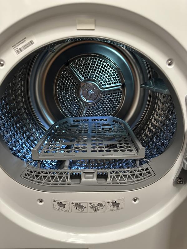 Der 2-lagige Gewebefilter befindet sich unter der Tür und ist einfach zu entnehmen und zu reinigen. Zusätzliche Filter für die Wärmepumpe sind überflüssig. Der Trockner verfügt über einen Filterreinigungsalarm und einen zusätzlichen Alarm, der Sie alle 25 Trocknungszyklen an die Reinigung des Kondensators erinnert.