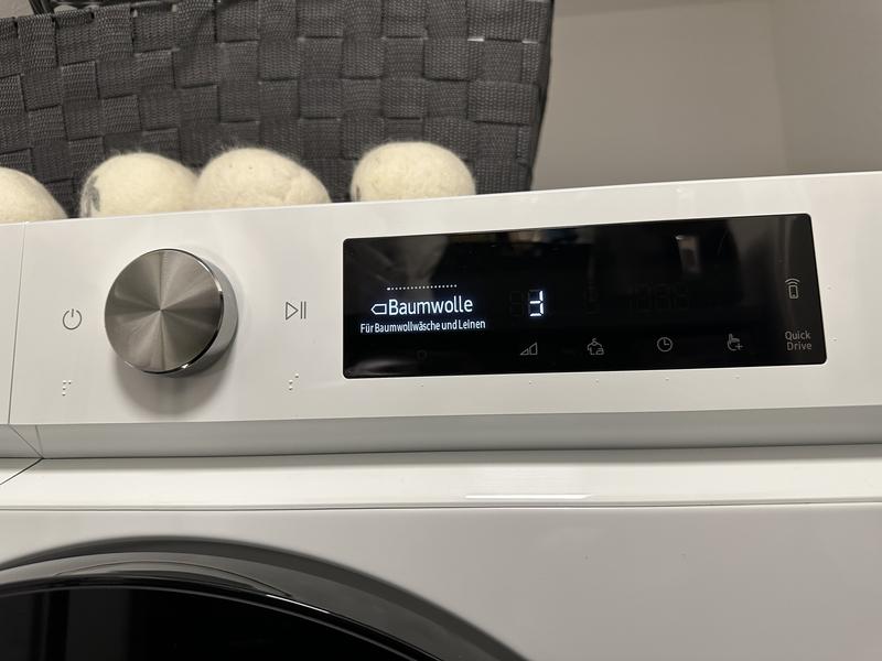 Schonend und schnell Trocknen. Wenn Sie die QuickDrive™ - Option aktivieren, verringert sich die Trocknungszeit um bis zu 35 %. Die intelligente Steuerung optimiert die Leistung des Inverter-Kompressors und achtet gleichzeitig auf die Temperatur in der Trommel.